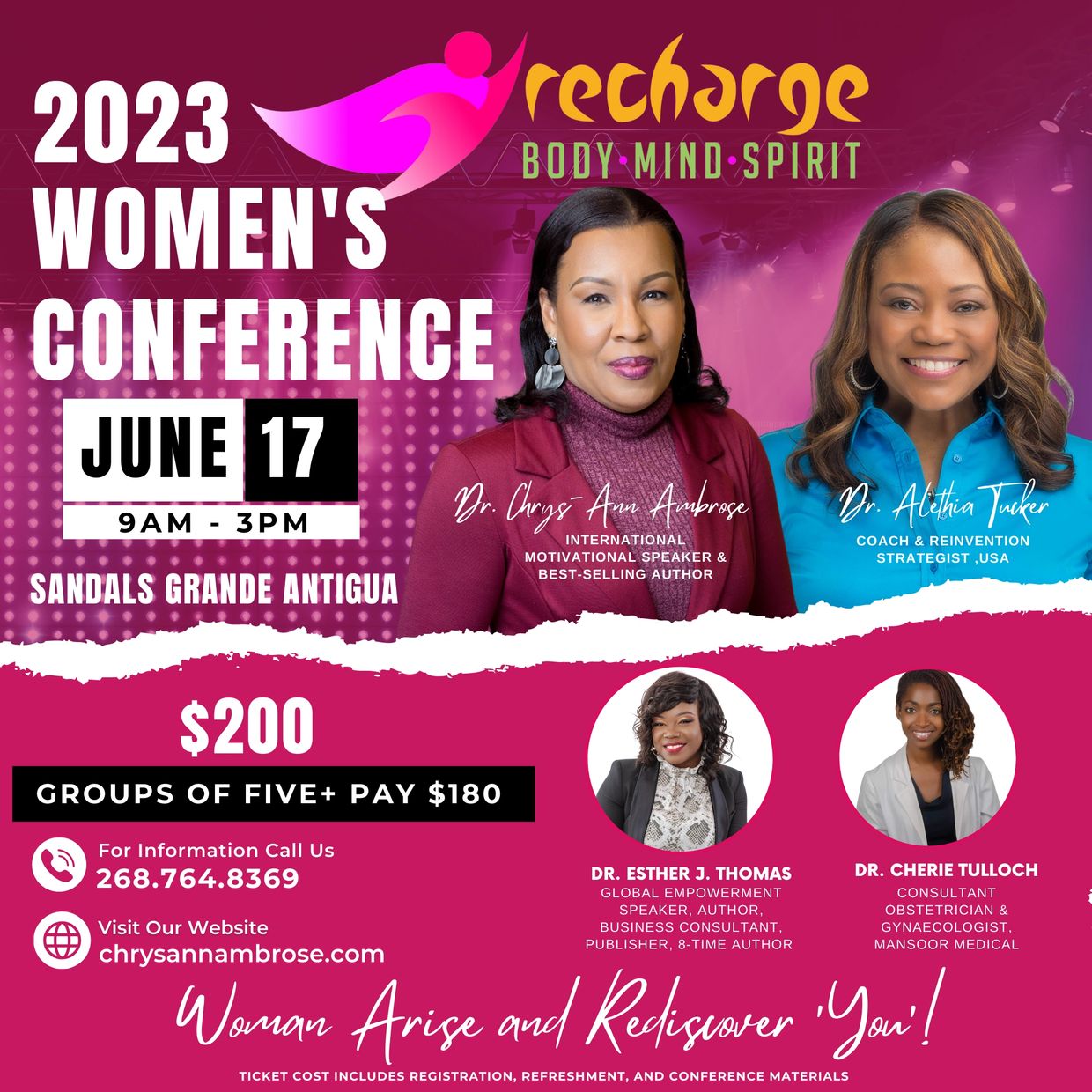What do you do when you have 4 dynamic, revolutionary and life-transformational speakers, a room filled with women desperate for holistic transformation, and 6 uninterrupted hours? That's right! You recharge! For this year's edition of the Recharge: Body, Mind & Spirit Women's Conference, Chrys-Ann collaborates with Dr. Alethia Tucker out of the USA to facilitate what we think will be 'one for the books'--a women's conference to remember. Together, the expertise, geniuses, passions, heart and specializations of this year's speakers are intentionally and strategically geared towards recharging the woman's life.